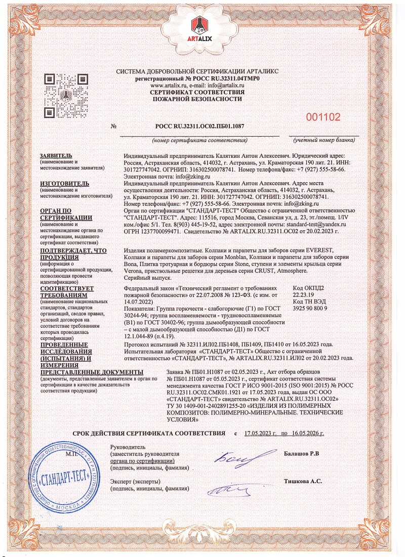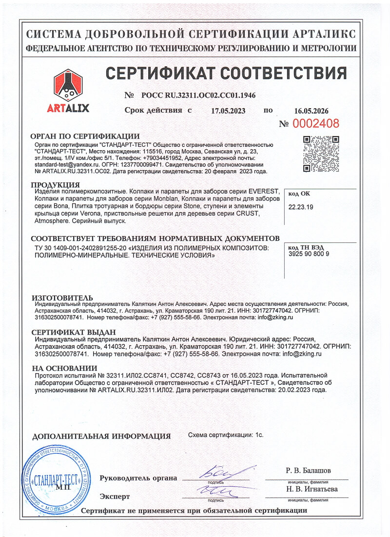 Сертификаты соответствия ZKING для Раменского